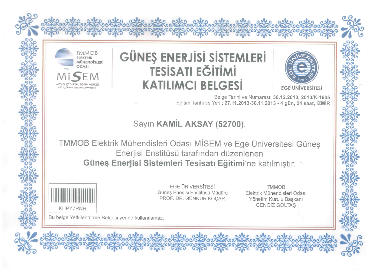 Sizlere daha iyi hizmet verebilmek için bilgimizi de belgemizi de güncel tutuyoruz.